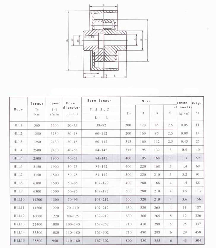 HL, HLL (LX, LXZ) elastic pin coupling characteristics and applications: with small compensation performance, simple structure, easy to manufacture, easy to replace the pin, very poor reliability, suitable for axial turbulence, frequent start The shaft drive with positive and negative rotation is not suitable for the parts with high precision of work reliability. It is not suitable for shaft drive with high speed, heavy load and strong impact vibration. The shaft system with low installation accuracy should not be used.
