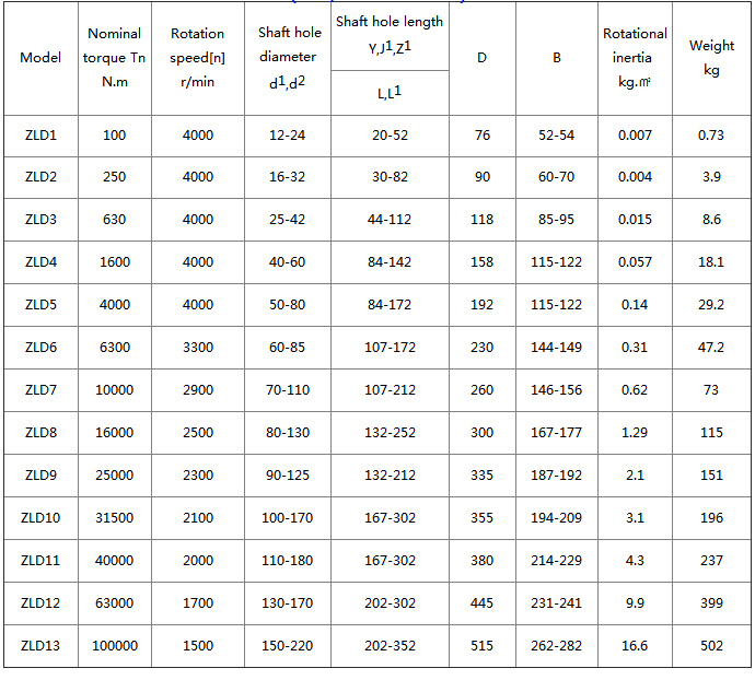 The elastic pin of the LZD type elastic pin gear coupling is turned by a nylon rod and placed in the matching hole between the two coupling halves and the outer sleeve, and transmitted through the elastic pin between the coupling and the outer sleeve. Moment, with a certain axis offset compensation and shock absorption performance. The pin can be removed and installed, and the baffle can be changed. The material is self-lubricating material and nylon is not required to be lubricated. Therefore, the LZD type elastic pin gear type coupling is easy to maintain, and has the advantages of small volume, light weight, simple structure, convenient replacement and low production cost compared with the toothed coupling. The LZD type elastic pin gear type coupling transmits a nominal torque of 100~100000N.m; the allowable speed is 4000~1500r/min; it belongs to the low speed high torque coupling. The LZD type elastic pin gear coupling is made according to the standard of GB/T5015-2003; the working temperature is -20~70°C; the axial compensation amount is ±1.5~3mm; the radial allowable compensation is 0.3~1.5mm; the angular tolerance is 0.5°. In addition, the biggest difference between the ZL (now LZ) type elastic pin gear coupling and the LZD type elastic pin gear coupling is that the LZD type pin gear coupling allows the shaft hole of one end of the coupling to be tapered. hole .![]() |