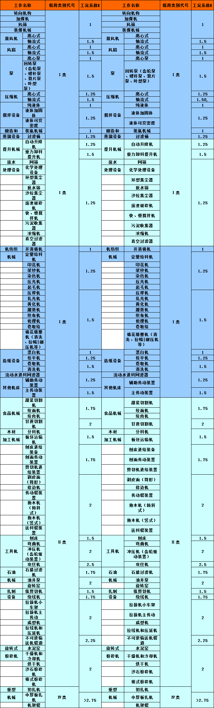 b.上表所列K值,其動力機(jī)為電動機(jī)和透平,若為其他動力機(jī)應(yīng)考慮動力機(jī)系數(shù)Kw