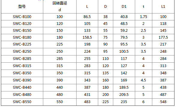 SWC萬(wàn)向聯(lián)軸器用十字包的主要尺寸:mm